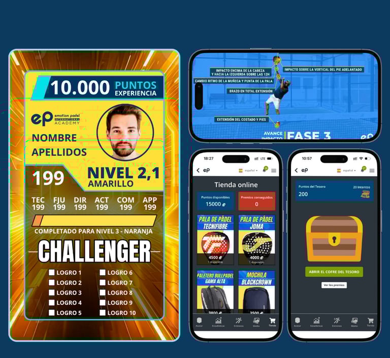 Con Emotion Padel, podrás ver qué golpes trabajarás, qué ejercicios harás... Y todo, con vídeos explicativos.